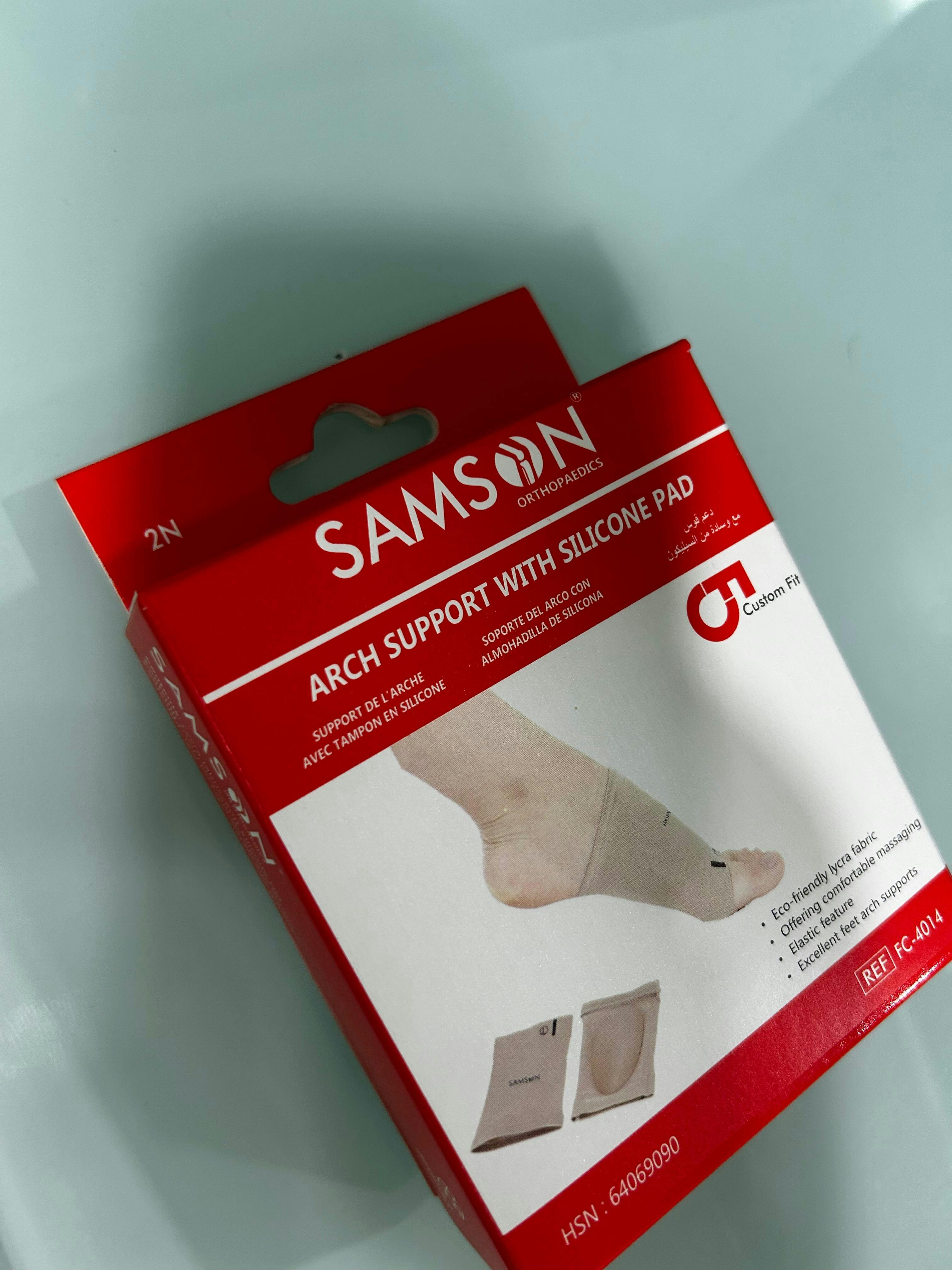 The Samson Arch Support with Silicon Pad provides superior comfort and targeted support to relieve foot pain. Designed with a silicon pad, it helps absorb pressure and improve your foot posture, making it perfect for those with flat feet or arch-related discomfort.